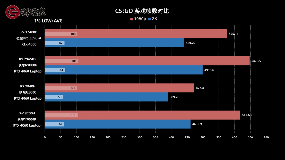 但以上这么多游戏也足够说明,不是AMD不行,还是笔记本电脑这个品类,打游戏太弱了。12400F的台式电脑完胜了同价位的GeekPro游戏本,不管是平均帧还是最低帧,都有大幅度领先。毕竟台式机里不存在抢功耗的现象,帧生成的稳定性非常好。