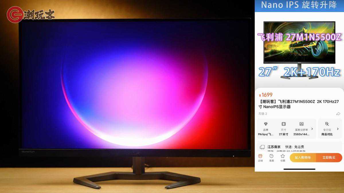 我们这次测试分辨率选择了1080p和2K两种,除了CS:GO一直采用低画质外其余均为中画质。几台笔记本虽然都是2K屏高刷,但有的是16:9有的是16:10,差了快10%的分辨率,所以几台笔记本都是和台式机一样,外接了2560×1440170Hz的飞利浦27M1N5500Z,NanoIPS面板,目前我们店里售价1699元。