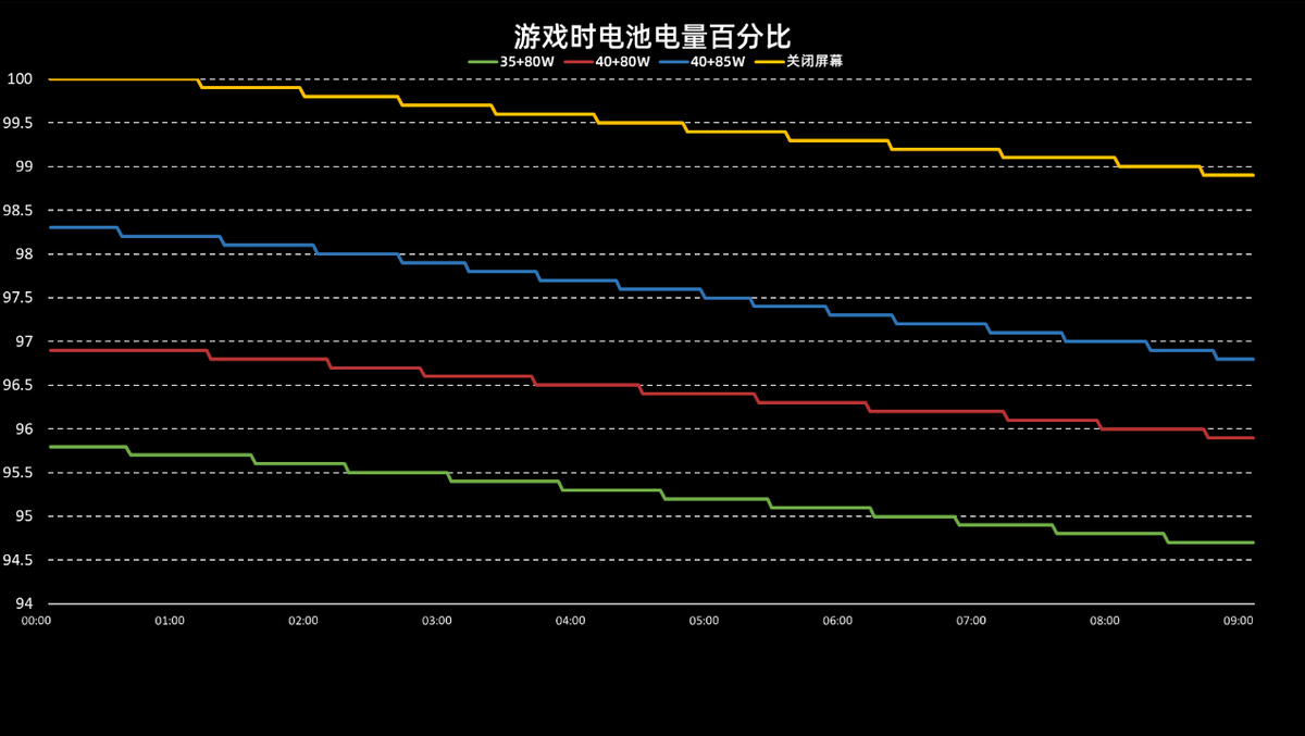 一开始使用预设的野兽模式跑游戏时我们发现CPU功耗给得太低了,仅25-30W,显卡则是105-110W,稍微吃CPU一些的游戏,掉帧情况实在太厉害了,后来我们把CPU提高到45W,显卡降低到90W,实际游戏中为35+95W,这样低帧卡顿的情况就缓解了许多。所以如果你买了这台电脑的话,这个功耗自定义调节的折腾你应该是省不了的。