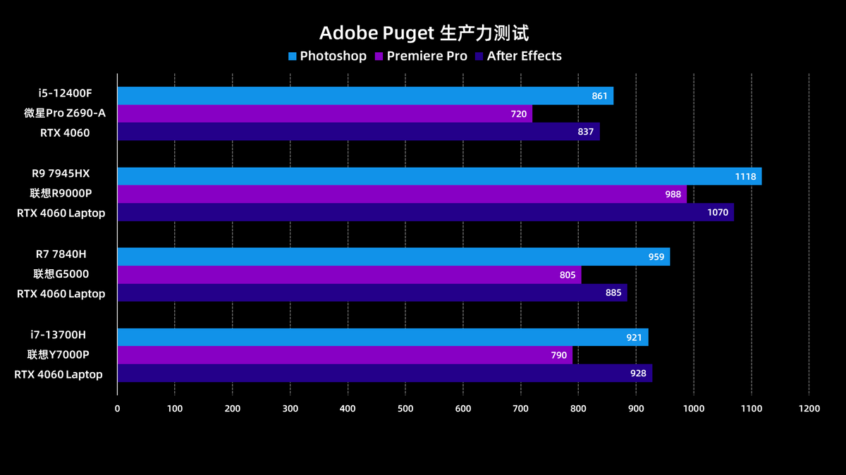 同样的情况也出现在了Adobe三件套的测试上,说明如果你拿游戏本不打游戏,而是主要干活跑运算什么的,那同价位下笔记本的表现都比台式机要强不少,毕竟核心数量多一些。