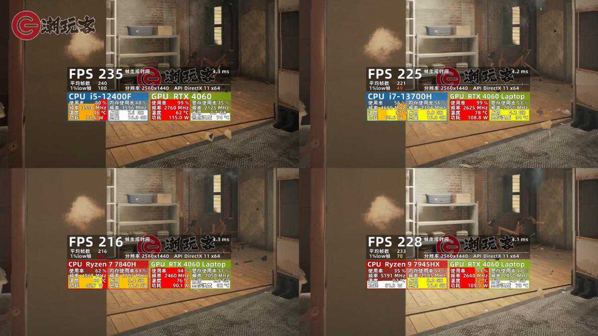综合1080p和2K下的这几个游戏表现,4060台式机依然是永远的神,不管是帧数上还是帧的稳定性上,哪怕是一个12代的6核心i5,相比同价位笔记本都有不小的优势。而比它贵了近一倍的R9000P,和台式机比也只能说是互有胜负,至少游戏时的帧稳定性相比其它两款笔记本要好多了,很少掉帧卡顿。主要还是12400F的核心频率不高,单核心性能不如R9,所以有些游戏的平均帧有劣势,不过这样的对比并不公平,毕竟7945HX的R9000P要卖到9000块了,我们也只是出于好奇,CPU这么好的4060游戏本,应该能和台式机一战了吧?