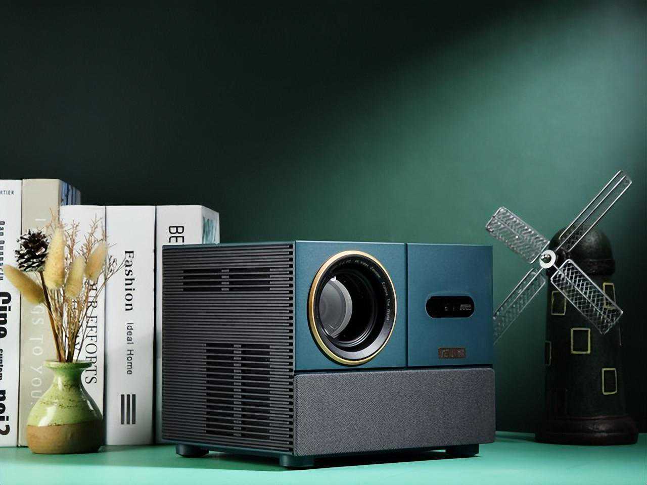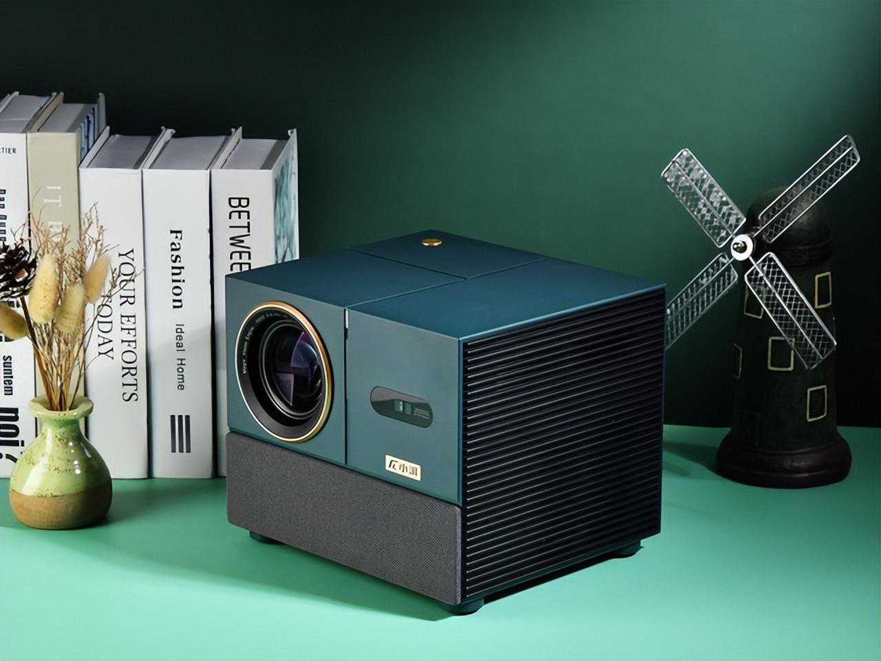 小湃智能投影仪T1采用绿色搭配黑色,同时设计了很多区块分隔,类似魔方的设计给人很强的设计感。它没有使用入门投影机常见的钢琴漆等设计,那种设计容易留下指纹和划痕。它采用PC+ABS和布艺的混搭设计,火花纹磨砂工艺,产品更具气质。