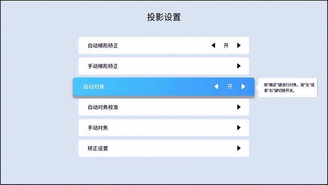 而原本应该在3000元以上投影机才出现的自动对焦以及自动梯形校正功能,在小湃智能投影T1也有配置。开机就对焦,侧投也没有问题,这样大大的提升了使用的便利程度,简化了安装过程。