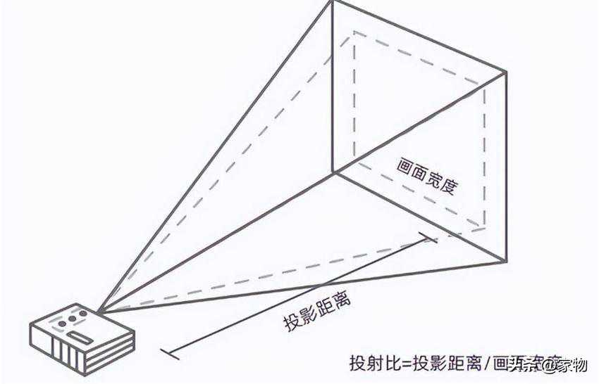 显示画面大小跟距离和位置脱不开关系,所以才诞生了投射比这个名词。其实投射比说简单点就是:投影仪到屏幕的距离和画面宽度的比值,一般来说,投射比越小越好,像1.2:1就适配于多数家庭。