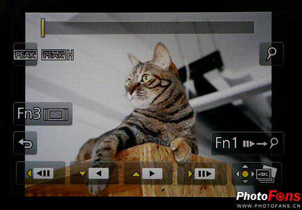 背面主要是3.0英寸的翻转触摸屏。按键分布于屏幕上侧和右侧,分布较为均匀,误按几率不大。当然这主要还是看使用者的手大小。另外,背面左上角还配置了一个276万像素的EVF取景器。