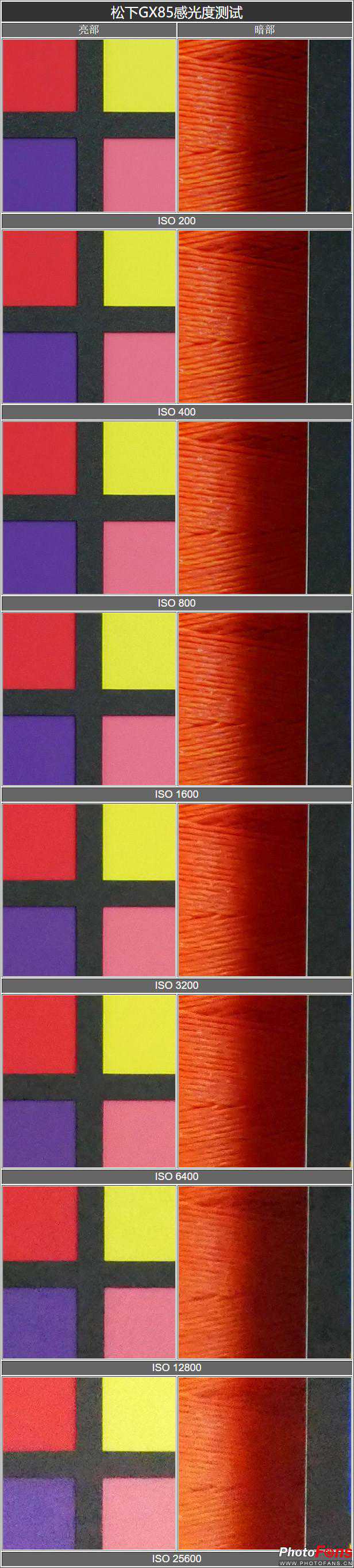松下LumixGX85感光度测试表